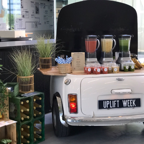 Ben je op zoek naar opvallende smoothie catering voor op een event, feest, festival of beurs? Wij werken met een opvallende mobiele smoothiebar waar vanuit wij heerlijke biologische smoothies mixen. Tijdens onze smoothie catering op locatie zetten wij onze enthousiaste fruitshakers/smoothiemakers in. Samen met jouw creëren wij graag een recept dat past bij het thema van het event. Vraag ons gerust naar alle opties!